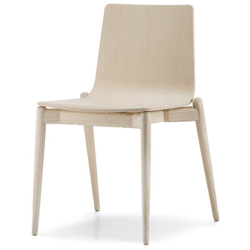 Sa structure est en frêne blanchi. Sa coque est en multiplis, pouvant être garnie en tissu ou en cuir.