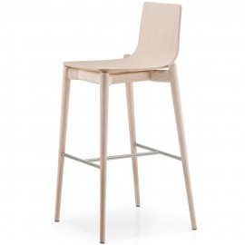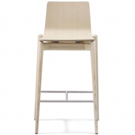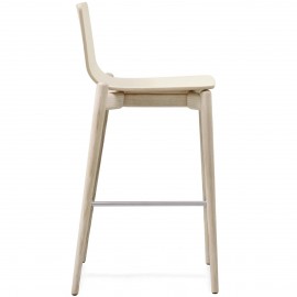 Les tabourets ont une structure en frêne blanchi, frêne teinté noir ou teinté gris. La coque en multiplis existe en 3 versions : naturel, recouverte de tissu ou de cuir.