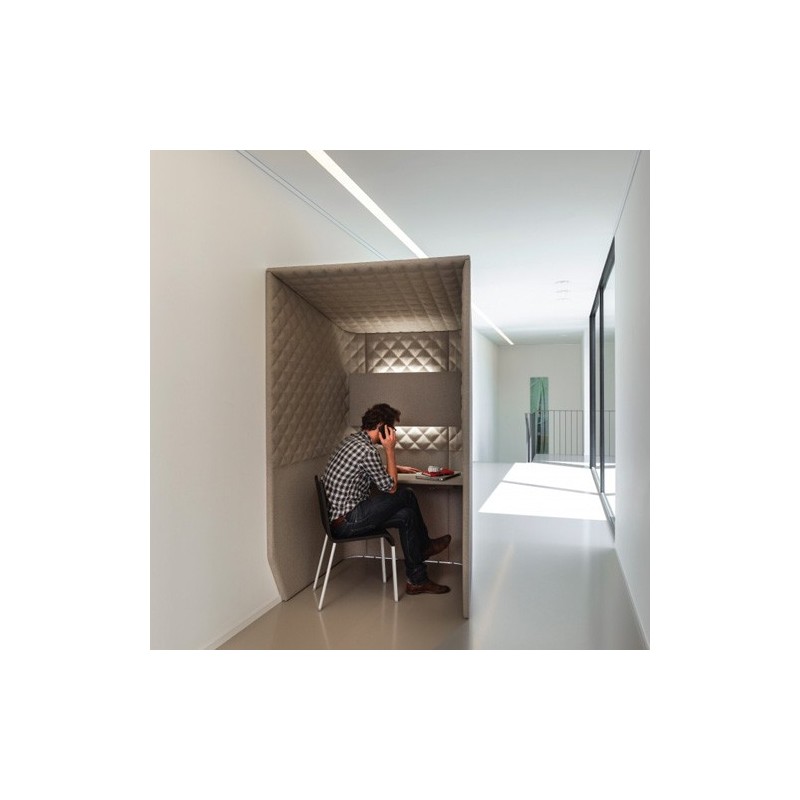 C’est pourquoi le designer Alain Gilles a conçu le Booth. une "cabine téléphonique acoustique" qui absorbe les bruits extérieurs : tranquillité assurée, même dans les endroits les plus bruyants. Un bel exemple de micro-architecture pour maxi-espaces !
